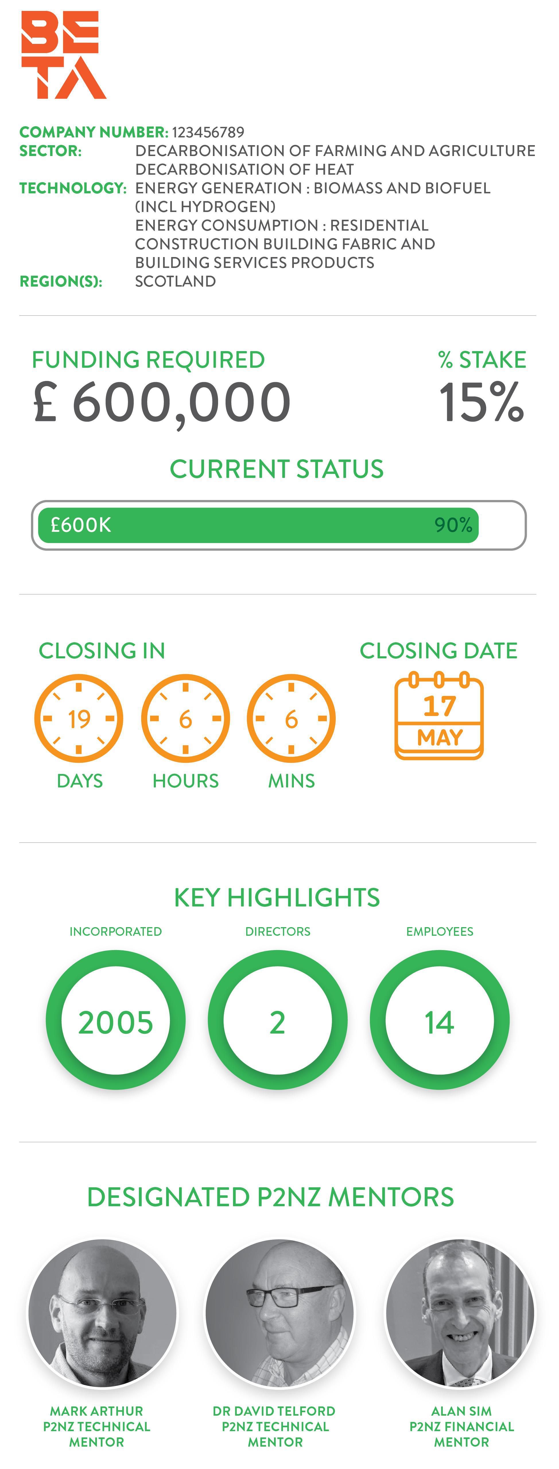 “We initially tried to secure 100% of the funding via Royal Bank of Scotland but they were looking for further security and at our stage in life we did not want to proceed down this road. We came across P2NZ in the Glasgow Herald newspaper and once we downloaded their App knew immediately that raising the additional £600k via equity release was the correct approach for Beta Biomass Ltd. With us living nearby to Glasgow, we have enjoyed discussing our project in person with Mark, Alan, Lynn and David and in particular were very impressed by Dr David Telford’s all round knowledge of everything to do with carbon neutrality and climate change.” Co founders John and Jane Smith
